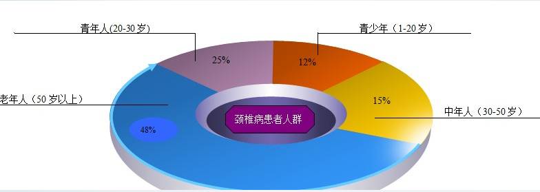 过去,颈椎病一向都只是中老年人的“专利”,但是近年来颈椎病患者的低龄化已经到了令人吃惊的地步。近年国内一项研究对2000例颈椎病患者展开调查显示:青少年和上班族患颈椎病的人数徒增,甚至30岁以下患者所占的比例比30岁到50岁的患者高出了22%。20年来,颈椎病的高发年龄从55岁,一路跌至39岁,颈椎病越来越低龄化。换句话说,就是现今年轻人患颈椎病的人数已经远远超越了中年人是仅次老年人之后。
