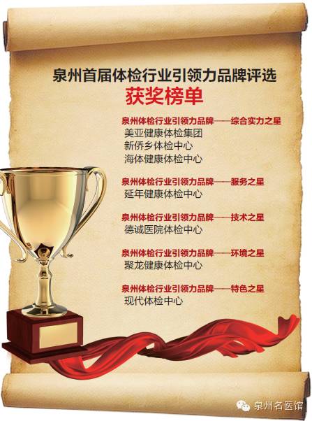 随着体验活动的结束,主办方综合了第一轮票选情况和第二轮的读者体验问卷评价,并进行严格计分,最终评选出泉州体检行业引领力品牌诸多奖项,今日正式发榜(榜单附后)!