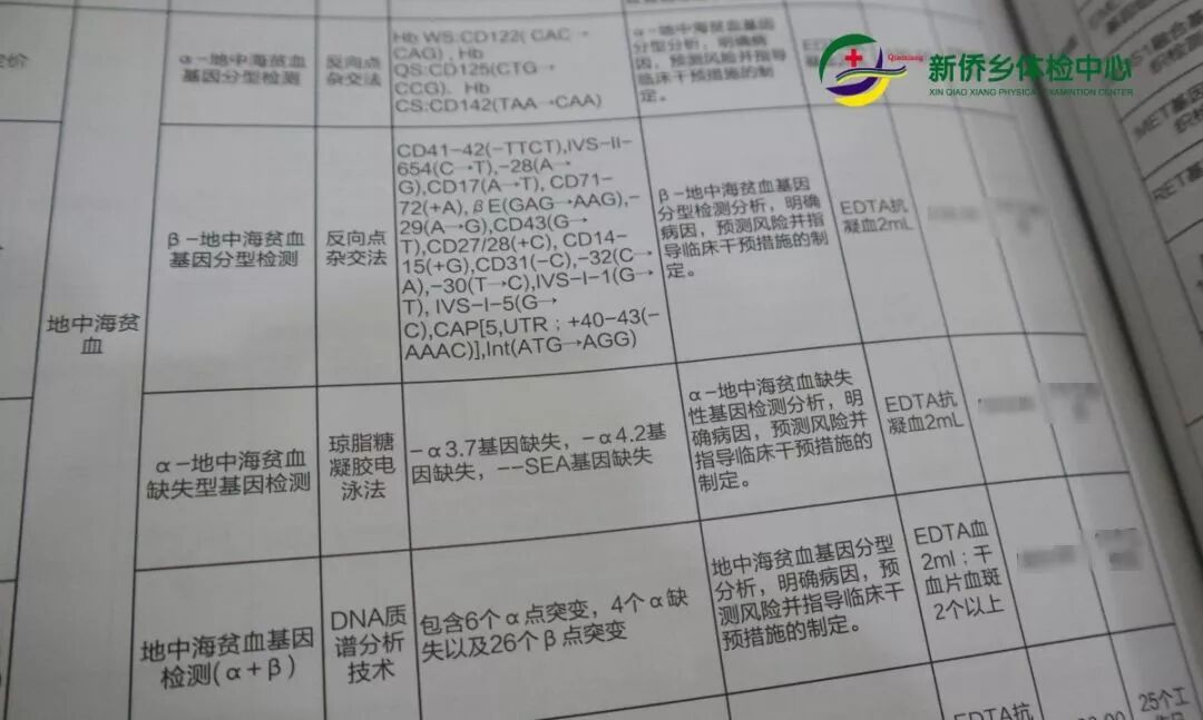 新侨乡体检中心已有针对地中海贫血基因的筛查检测!